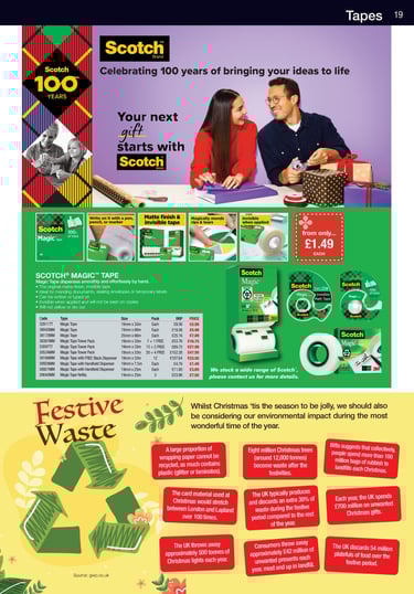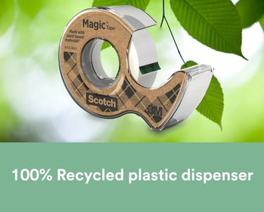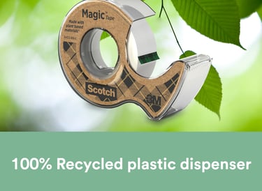Encourage your customers to use less plastic by switching to a Scotch® Refillable Tape Dispenser and using Scotch® Magic Tape made with 66% plant based adhesive.