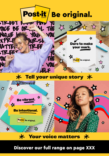 The new Post-it® Be Original campaign emphasises the importance of the words you write. Download the marketing tools below and encourage your customers to tell their unique story.
