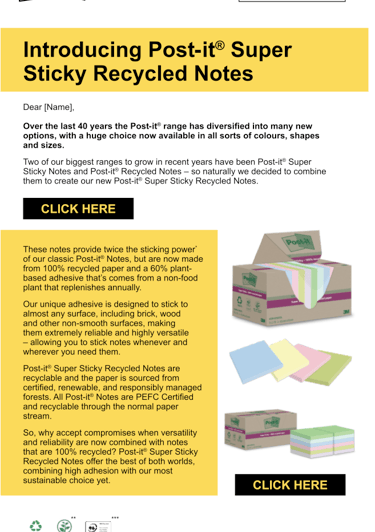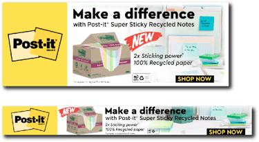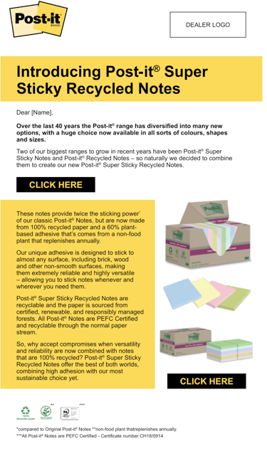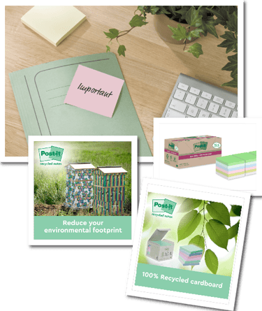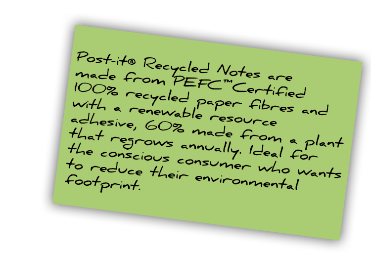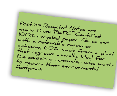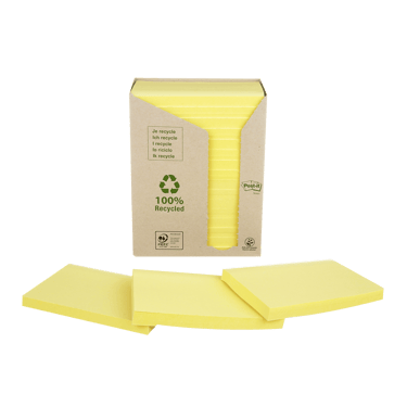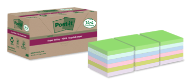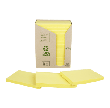 Post-it® Super Sticky Recycled Notes are made from 100% recycled paper and are recyclable. They have 2x the sticking power compared to Post-it® Original Notes.