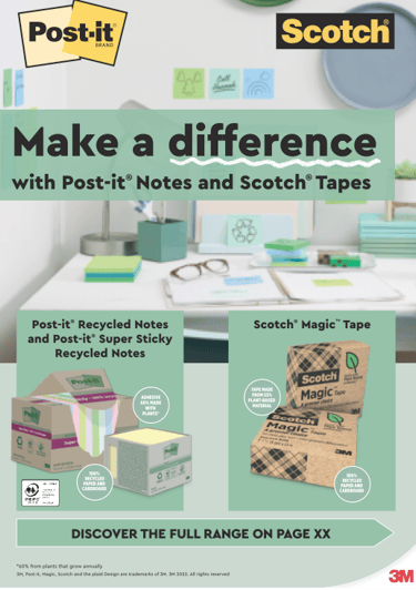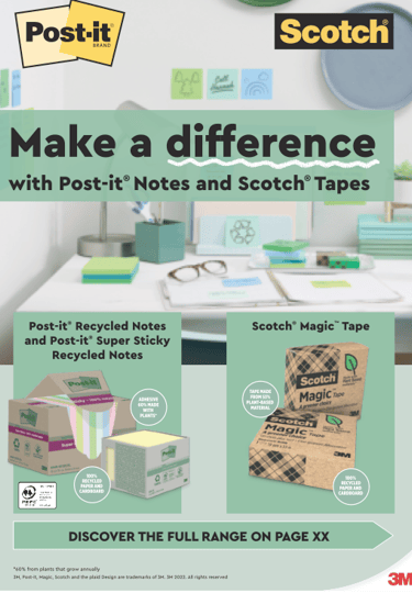 The packaging is made from recycled cardboard that can be used to easily store your sticky notes on your desk or in your cupboard and can be recycled once not needed anymore.